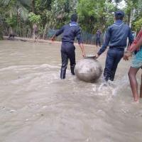 Naval Rover crews worked with the local administration and helped rescuing the flood-hit villages like Kanai Nagar, Chila, Vidyarbahan and Digraj, alerting the people, taking them to the nearest cyclone shelter and distributing food.