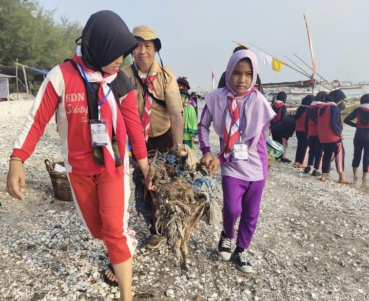 Kegiatan Bersih Pantai Kenjeran Surabaya dalam salah satu ketiatan Jambore Wilayah Kwartir Cabang Gerakan Pramuka Kota Surabaya.