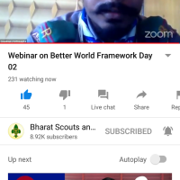 I would like to thank the World Organization of the Scout Movement [WOSM] and The Bharat Scouts and Guides [BSG] to conduct this webinar - Better World Frame Work [BWF] in this pandemic situation through which hundreds and hundreds of scouts and guides / simple citizen learned this much from this webinar to make this world a better world.