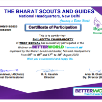Successfully participated in the webinar on BETTER WORLD FRAMEWORK organised by NHQ BS&G from 5th to 8th & 17th to 20th August 2020 I am very happy to be able to stay at this beautiful event