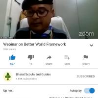 The Better World Frame Work is an initiative of WOSM was conducted through webinar by Bharat Scouts and Guides India. From 5th to 8th August 2020 & 17th to 20th August 2020 on YouTube channel of BSGIndia a series of 8 webinar was organised on various WOSM initiative.