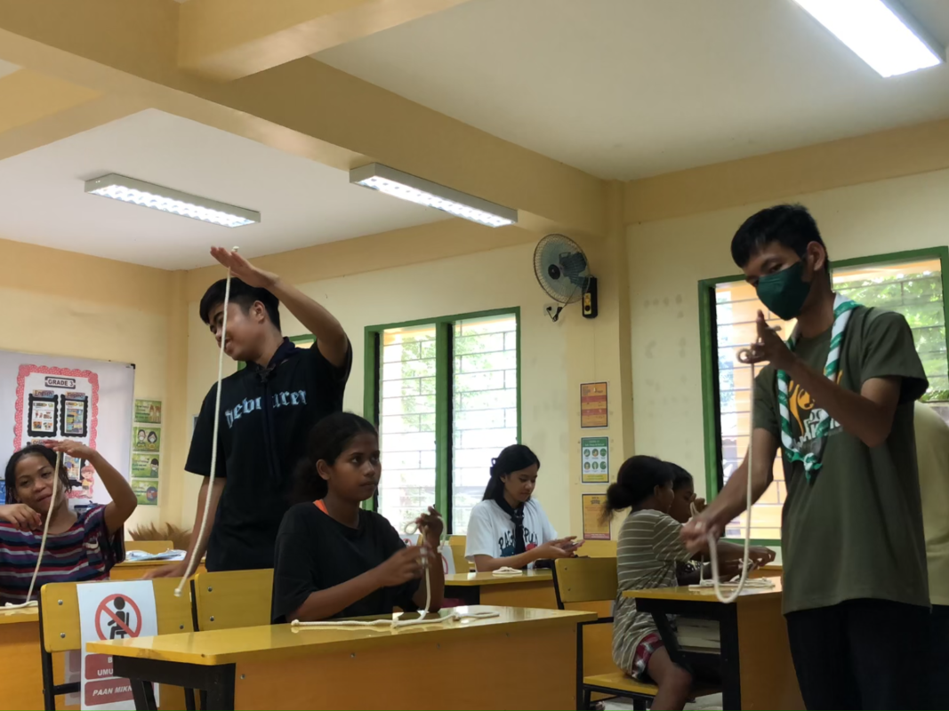 07/21/2022: The Brigada Scouting service started with teaching the young Aetas basic knot tying. The Rover Scouts and Service Volunteers taught the parts of a rope, kinds and importance of knots, and some basic useful knots like Bowline. After the teaching demonstration, the young Aetas played a simple game of knot relay to test their learnings.