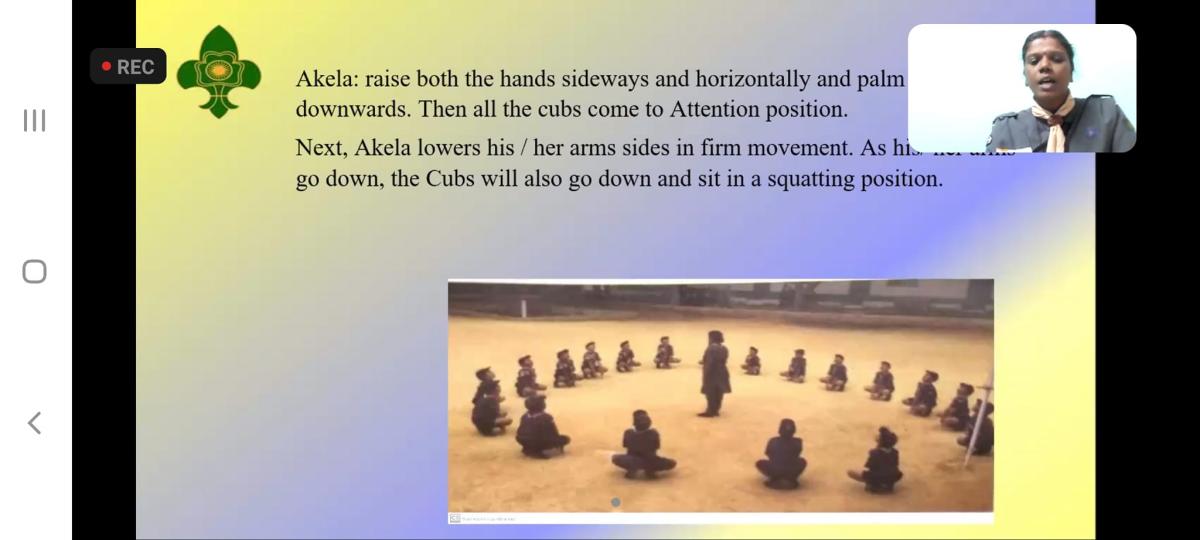 Session Leaders- sh Vinod sharma L T (cub) Rajasthan, sh Ravi Nandan Banhoot L T Cub Rajasthan, Priya B pre A L T Tamilnadu.