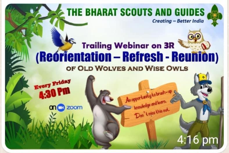 24 Dec: BSG Create Better India Organized a new programme Trailing webinar for beginning section of scouting on Topic-- 3R (REORIENTATION-REFRESH-REUNION) OF OLD WOLVES AND WISE OWLS.