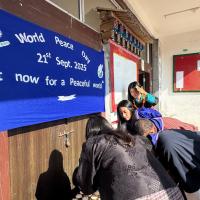 On the International Peace Day, our program began with a flag ceremony, where the family of Tashithang MSS gathered with pride and unity to honor the day. This was followed by the lighting of butter lamps and Moenlam prayers, offered for peace, harmony, and well-being of all sentient beings. Afterward, we held a meaningful peace talk, where speakers shared inspiring messages about the importance of kindness, compassion, and working together for a peaceful world. To conclude the celebration, all participants joined in a mass cleaning campaign, reminding us that true peace also means taking care of our environment and living responsibly in our community.