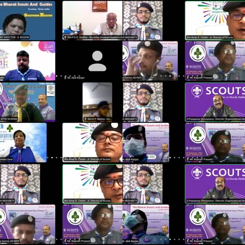 Talk on theme of peace day 2021 I.e."Recovering better for an equitable and sustainable world.” then Kate Aranzamendez from Asia Pacific region shared about the theme and aim of 2015 to 2021. After that in the Firts part Mr Bablu Goswami Assistant director Eastern Region deliver vote of thanks to our speakers.Then Mr AMAR B CHETTRI sir shared his words and report.moving ahead Mr J.c. Mohanty international commissioner scout shared the opening lighting of the ceremony and Inauguration done by Mr PGR Sindhia , Secretary general president and council followed by State wise report and action on Sdgs. Message from Mr Ahmed sir the secretary general wosm .Then Inauguration of Bsg star award and mop ring Badge was announced by Mr Kali prasad mishra state commisioner ODISHA and national vice President and Mr Madhusudan Avala sir Deputy international commissioner scout.Valuable remark of the webinar Shared by Mr Rajkumar Koushik, Director BSG and our Joint Direct guide smt Darshana pawaskar mam deliver vote of thanks.I am a scout a messenger of peace.
