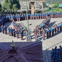 Morning begun with the celebration of international peace day through inter-class poster competition and a few cultural items based on the theme "Recovering better for an equitable and sustainable world". Noon was further blessed with the gracious visit of Honorable Lam Neten of Trash Yangtse Dratshang with 108 Buddhist Canons (Kajur) after the successful recitation for 15 days in Chorten Kora, students and staff members of Baylling were so fortunate to receive such historic holistic blessings.