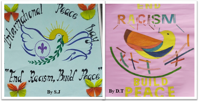 The banner with the theme and posters on International Peace Day was displayed at the assembly ground. In the gathering, the volunteered Scouts were called on the stage for Peace Talk as per the preset theme. Scout Leaders read a message from UN Secretary General and a poem which was based on the theme “End Racism. Build Peace.” School Scouts Commissioner and Scout Leaders also gave a Peace Talk.