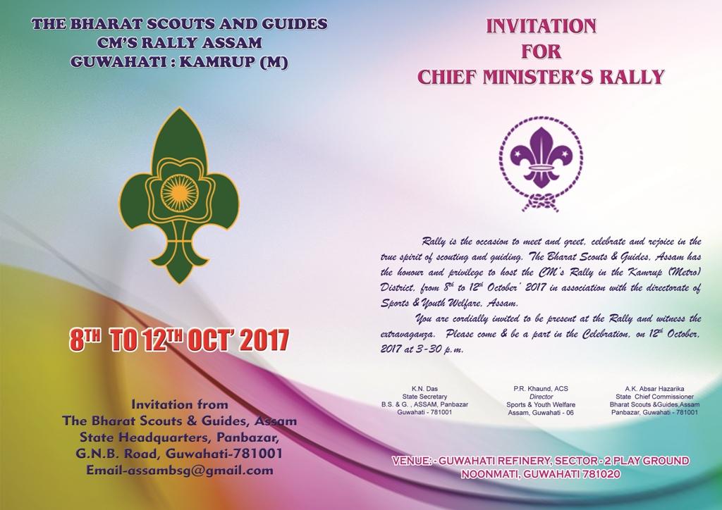 A total of 800 Scouts, Guides and trainers from 25 districts of Assam under the Bharat Scouts and Guides' state unit will participate in the first "chief minister's rally" at the Guwahati Refinery Sector II playground at Noonmati from October 8 to 12.