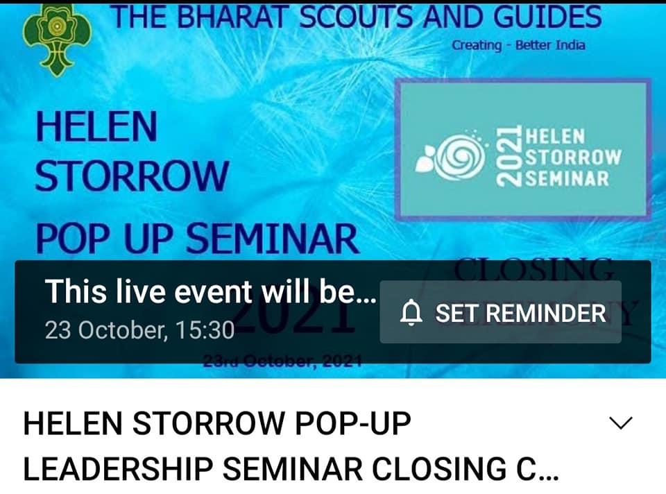 23 Oct: The Bharat Scouts and Guides India Closing Ceremony of HELEN STORROW POP - UP SEMINAR On