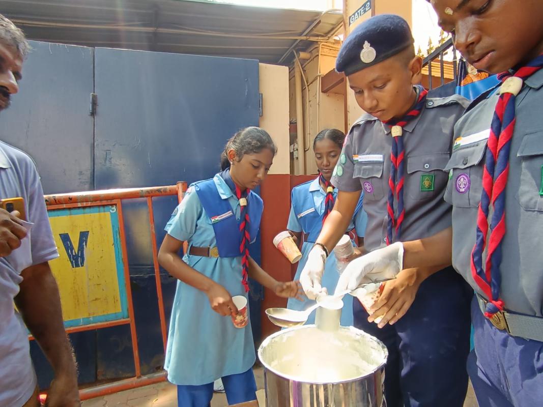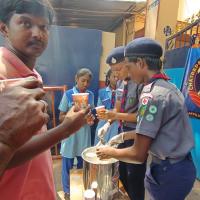 Sairam District Scouts and Guides, Distributing buttermilk to road workers and the public on 03.06.2024 This act of kindness not only provided much-needed refreshment in the heat but also demonstrated a deep sense of community service. Such initiatives are a great reward, highlighting the values of empathy and generosity in the young mind. Their efforts are truly praiseworthy and set a wonderful example for others to follow.