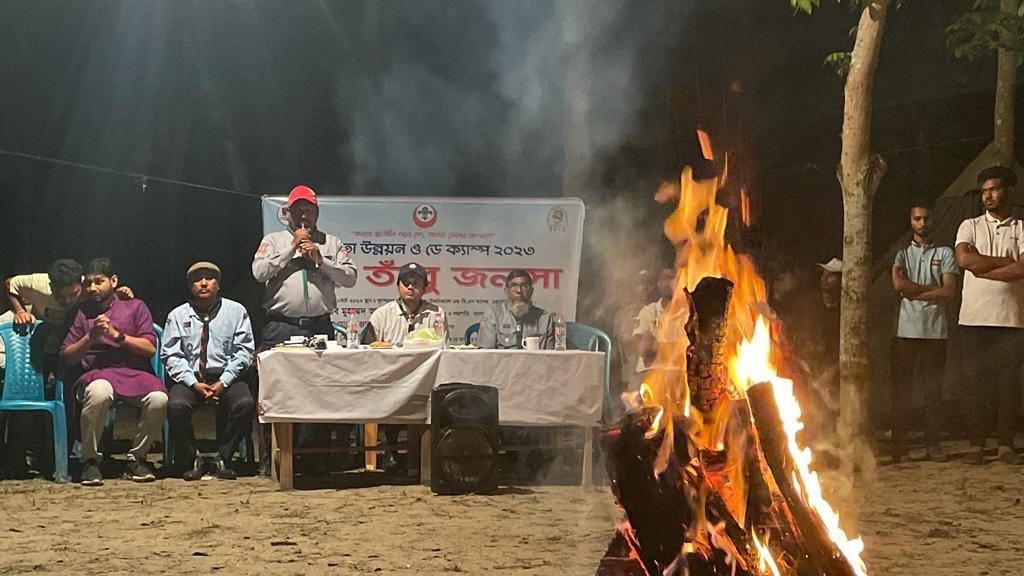 আমরা ১৮-০৩-২০২৩ তারিখ সকাল ৮.৩০ এ কেম্প এলাকায় উপস্থিত হই আমাদের প্রোয়জনিয় জিনিস গুলো নিয়ে । সকাল ৯ টায় আমাদের রেজিষ্ট্রেশন এবং রিপোর্টিং ।এর পর আমাদের ৮ টি উপদলে ভসগ করে দেওয়স হয় ।আমি "সাটুরিয়া" উপদলে থাকি মোট ৫ জন । আমরা এর পর তাবু সংগ্রহ করি এবং তাবু খাটিয়ে তাবুতে অবস্থান করি ২ দিন । এর পর আমাদের কেম্প চিফ আসেন এবং পতাকা উত্তলনের মাধ্যমে আমাদের কেম্পের উদভদন করেন l এর পরে আমাদের চেলেন্জ গুলো সুরু হয় । এবং আমাদের সেশন গুলো সুরু হয় তার পর।
