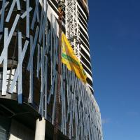 Today the Cubs from the Diamantina Cub Pack (in Canberra, Australia) partnered up with a local construction company Geocon to raise our Cubs100 flag up their biggest crane. They will fly our flag over Belconnen for two weeks before our National Cubs100 Campfire, then they will be transferred to another crane on the southside of Canberra. 1-2-3 Wolf!