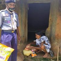 Dry Food, shawl, mask soap distribution and social distance maintain programme was held by Scout troop.