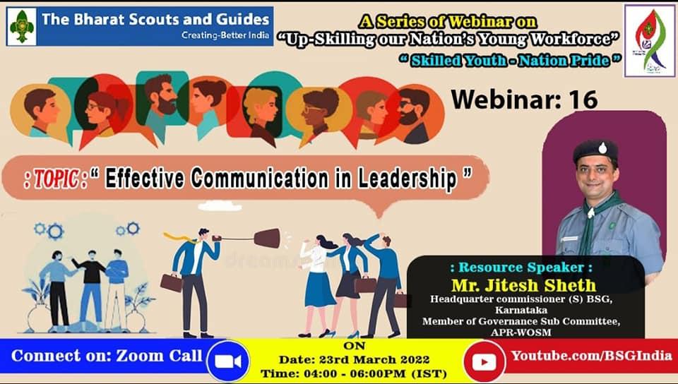 23 Mar: 🌏 BSG Create Better India Organized A Series of webinar On 🌐 UP-SKILLING OUR NATIONS YOUNG WORKFORCE.🎢 Today 16th we webinar On Topic- EFFECTIVE COMMUNICATION IN LEADERSHIP.