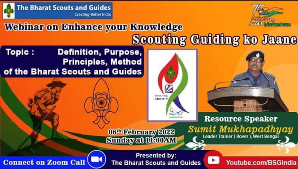 6 Feb: BSG Organizing a series of webinar on ENHANCE YOUR KNOWLEDGE- SCOUTING GUIDING KO JAANE. Today 2nd webinar on Topic- FUNDAMENTALS OF BHARAT SCOUTS AND GUIDES.