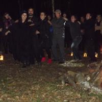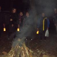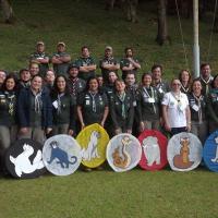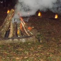 Cerimonia de Flor Vermelha durante o modulo de interpretacao do Livro da Jangal, com escotistas do Ramo Lobinho no Campo Escola de Bateias, Parana, Brasil, promovido pela UEB PR.