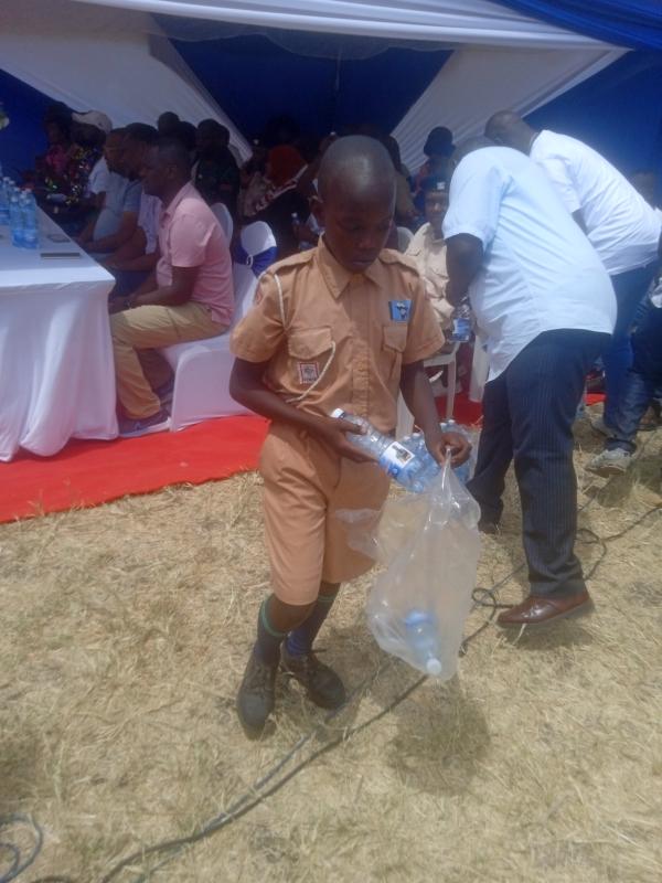 During a school ceremony to inaugurate new classes by the Member of National assembly graced by all the students and their parents, education stakeholders, government officials among others, the scouts purposefully organized to ensure that unlike the past where plastic pollution after big events was the norm, the story this time would be different and of the 20 crates of refillable water would be collected to the last bottle. Fortunately about 13 were collected with none to be found littered. The rest were presumably carried away by visitors and not left polluting the school premises. In total 304 bottles were collected by 34 scouts.