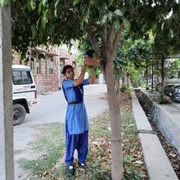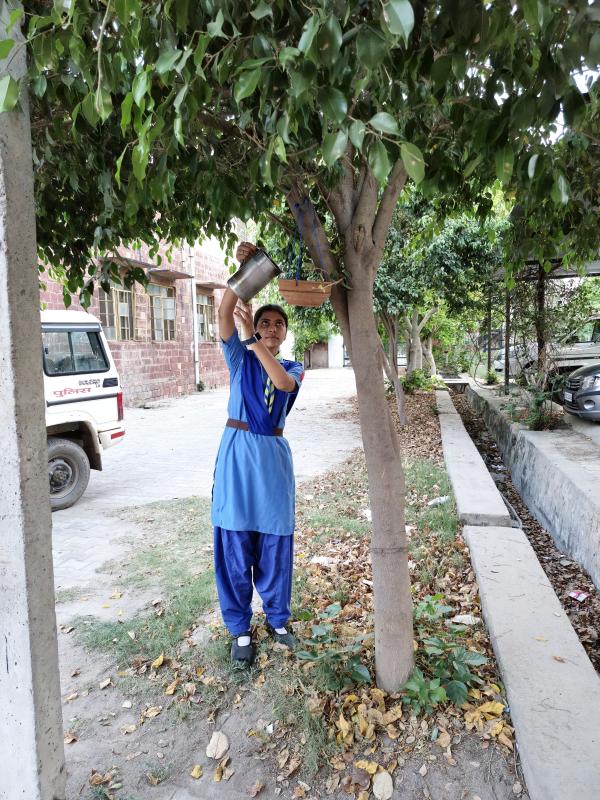 Seeing the bird feeder we put up, the people and students around us got inspired and they too started pouring water in the bird feeders