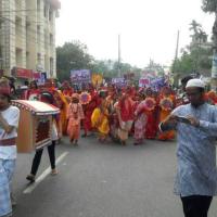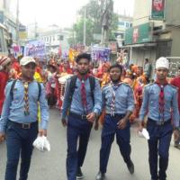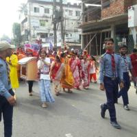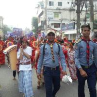 Today is a new year of bangla year. This day we celebrate with all bangla cultural things. Boy's ware with punjabi, Girl's ware white shari with read border. We eat our cultural food "panta with hilsha"