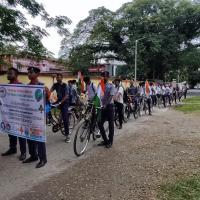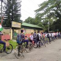 The Bharat scouts and guides , NF RAILWAY , Alipurduar District Association organized a cycle rally from divisional headquarter to Dima bridge with Nation flag to celebrate Gar Gar tiranga . There we hoisted our BSG flag and new group were introduced . After that we did a swachh Bharat abhiyan for surrounding clean. Nearby four o'clock lowering the flag we break off the program .