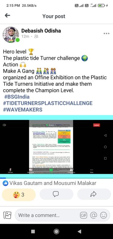 Make A Gang 👬👫👠organized an Offine Exhibition on the Plastic Tide Turners Initiative and make them complete the Champion Level.
