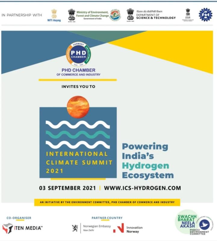 3 sept: "International Climate Summit 2021-Powering India's Hydrogen Ecosystem" on the ICS 2021 Virtual Portal.