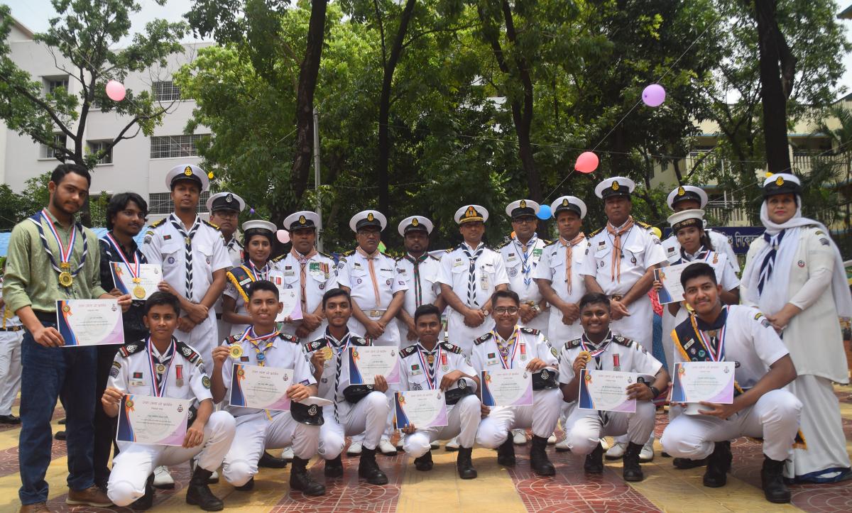 ২০১৯ সালের প্রেসিডেন্ট'স স্কাউট এওয়ার্ড অর্জনকারীদের মেডেল ও সারটিফিকেট প্রদান করেছেন বাংলাদেশ স্কাউটস, ঢাকা জেলা নৌ এর জেলা সচিব সাব লেফটেন্যান্ট এম রফিকুল ইসলাম, বিএন স্যার। স্যারের কাছ থেকে মেডেল ও সারটিফিকেট গ্রহণ।