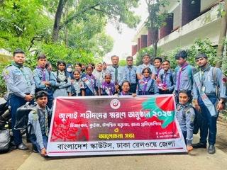 ২০২৫ সালের জুলাই মাসে আমরা, বাংলাদেশ স্কাউট ঢাকা রেলওয়ে জেলার সদস্যরা, এক মহতী উদ্যোগে অংশগ্রহণ করি—"জুলাই শহীদদের স্মরণে অনুষ্ঠান ২০২৫"। এই দিনটি শুধু একটি আনুষ্ঠানিকতা ছিল না, ছিল আমাদের জাতির শ্রেষ্ঠ সন্তানদের প্রতি ভালোবাসা, শ্রদ্ধা ও কৃতজ্ঞতা প্রকাশের একটি আন্তরিক প্রয়াস।