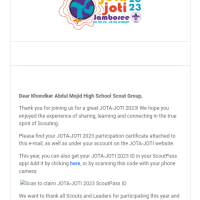 বিশ্বব্যাপী ২০-২২ অক্টোবর ২০২৩ বিশ্ব স্কাউটস সংস্থার আয়োজনে ৬৬তম জোটা ও ২৭তম জোটা অনুষ্ঠিত হয়। JOTA-JOTI হল বিশ্বের বৃহত্তম ডিজিটাল স্কাউট ইভেন্ট যা অনলাইনে এবং ওভার দ্য এয়ার হচ্ছে। শিক্ষামূলক ইভেন্টটি প্রতি বছর অক্টোবর মাসে স্কাউটিং এবং বন্ধুত্বের সপ্তাহান্তে 2 মিলিয়নেরও বেশি স্কাউটকে একত্রিত করে। তরুণরা যোগাযোগ প্রযুক্তি সম্পর্কে শিখতে পারে এবং 174 টিরও বেশি দেশের সহকর্মী স্কাউটদের সাথে সংযোগ করতে পারে।