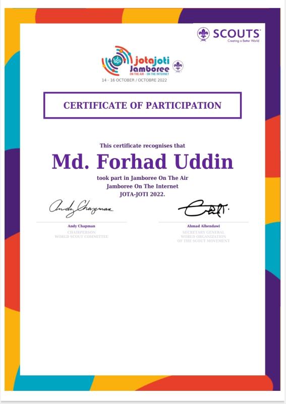 Jota Joti Jamboree 2022 was held from 14th October to 16th October 2022. I participated that jamboree through my MOP account. I joined with many games and discussions through Internet.