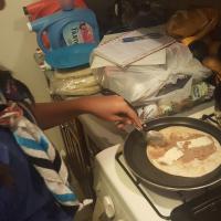 El platillo mas representativo de nuestra ciudad, son los burritos. Los jóvenes preparan un burrito de frijoles con queso.