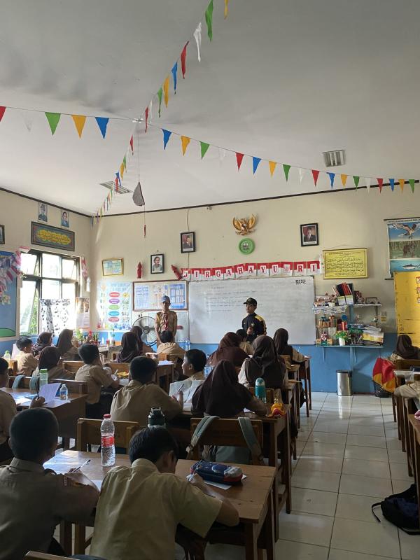 Di ruang kelas lain, tampak siswa-siswi berseragam pramuka duduk rapi di bangku kayu yang berderet. Mereka sedang serius mengerjakan soal atau mencatat penjelasan dari guru. Suasana kelas terasa hidup, meskipun meja terlihat penuh coretan, para siswa tetap tekun belajar.