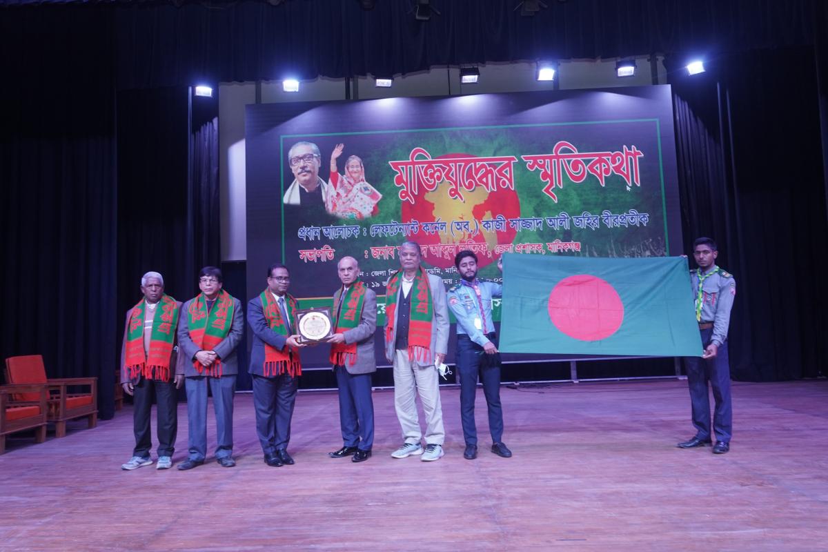 আজ ১৯ জানুয়ারি ২০২৩ তারিখ জেলা প্রশাসন, মানিকগঞ্জের আয়োজনে জেলা শিল্পকলা একাডেমির মিলনায়তনে মহান স্বাধীনতা যুদ্ধের পটভূমি ও ঘটনাপ্রবাহ নতুন প্রজন্মের কাছে তুলে ধরতে “মুক্তিযুদ্ধের স্মৃতিকথা” শীর্ষক অনুষ্ঠানের আয়োজন করা হয়। জেলা প্রশাসক, মানিকগঞ্জ মহোদয়ের সভাপতিত্বে উক্ত অনুষ্ঠানে প্রধান আলোচক হিসেবে উপস্থিত ছিলেন লে. কর্নেল (অব.) কাজী সাজ্জাদ আলী জহির বীরপ্রতীক। এছাড়া জেলা পরিষদের সম্মানিত চেয়ারম্যান বীর মুক্তিযোদ্ধা এড. গোলাম মহিউদ্দিন সহ অন্যান্য বীর মুক্তিযোদ্ধাগণ, জেলা প্রশাসন ও জেলা পর্যায়ের কর্মকর্তাগণ এবং পৌরসভার সকল স্কুল-কলেজের শিক্ষক-শিক্ষার্থীগণ উপস্থিত ছিলেন।