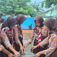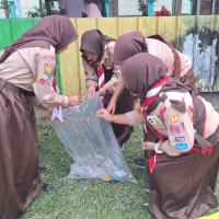 Saya membagikan beberapa tim dengan rekan-rekan saya untuk membersihkan lingkungan sekitar, ada yang membersihkan di sebelah barat, ada yang membersihkan di sebelah timur, ada yang membersihkan di sebelah utara, dan ada yang membersihkan di sebelah selatan. Lalu kami berkumpul untuk mengumpulkan hasilnya dan dibuang ke tempatnya.