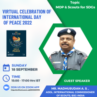 National Level Webinar on “Messengers of Peace and Scouts for SDGs” under Virtual International Day of Peace Celebration 2022 was organized by the Bharat Scouts and Guides National Headquarters on 18th September 2022 via zoom and the same was telecasted live through the official YouTube channel of BSG. The event started with BSG Prayer which was followed by the Welcome Address delivered by Sri Analendra Sharma, Assistant Director, North East Region in which he took the privilege to welcome all the esteemed guest speakers, NHQ Officials and the particpants. Sri Amar B Chettri, Joint Director of Scouts (Programme and Training) took the privilege to deliver the Opening Remarks where he introduced the event and it’s importance. After that, with the lighting of the lamp, Dr Kali Prasad Mishra, National Vice President, BSG and Sri M M Joshi, National Commissioner of Headquarters (Special Programme) inaugurated the event. Also, they blessed the virtual gathering and inspired the particpants. Then, session on Messengers of Peace and Sustainable Development Goals was taken by Sri Madhusudan Avala, Additional International Commissioner (Scout), BSG. The session covered all the elements of messengers of peace contributing to the Sustainable Development Goals, Ways of contributing to SDGs, Benefits for Community, the Messengers of Peace programme and network and the Scout Donation platform was explained in details to the particpants. Interactive Quiz on slido was organized at the end of the session to check the learning of the participants through this webinar. Various Presentations on Sustainable Development Goals were presented by active members of the Bharat Scouts and Guides working on various programmes. Sri Amar B Chettri, MOP NSO Coordinator addressed the gathering, congratulated the presenters for their wonderful projects and urged the members of the organization to upload the service projects in www.sdgs.scout.org to create more visibility of the Bharat Scouts and Guides. Finally, the Vote of Thanks was presented by Ms Shivangi Saxena, Assistant Director (Central and Western Region), BSG in which she thanked each and everyone who were present and have contributed for the success of the event and the event ended with the National Anthem. The event was coordinated by Mr Satyajit and Ms Priyanka under the dynamic leadership of Sri Analendra Sharma, Assistant Director, North East Region.