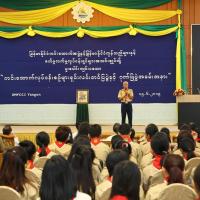 Then, Yangon Region Minister for Planning and Finance, Scout Master U Myint Thaung delivered key note speech. Myanmar Scout Association Chief Commissioner and Myanmar boy scout chief Dr. Tin Nyo explained scouting ,and youth coordinator Maung Phyo Thura Win, Rover Scout Leader Ma Myat Su Mon and International Coordinator Mg Kaung Myat Htoo detailed the their humanitarian and philanthropist work.