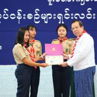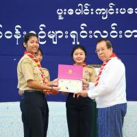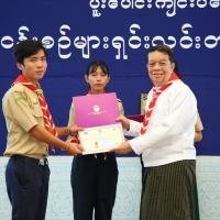 At the event, Chairman of Union Peace Commission and Patron of Myanmar Scout Association, Dr. Tin Myo Win, said that Myanmar Scout Association had ran local peace coordinators training in collaboration with Asia Pacific Scout Region, and that Myanmar hosted Dialogue For Peace facilitator Training which Myanmar scout representative and scout representatives from 13 countries of Asia Pacific Scout Region attended. This event reflects the effort of International and Myanmar youth for peace. The scouts were honoured for their achievement in building mutual respect, understanding and trust with international youth through this training.