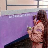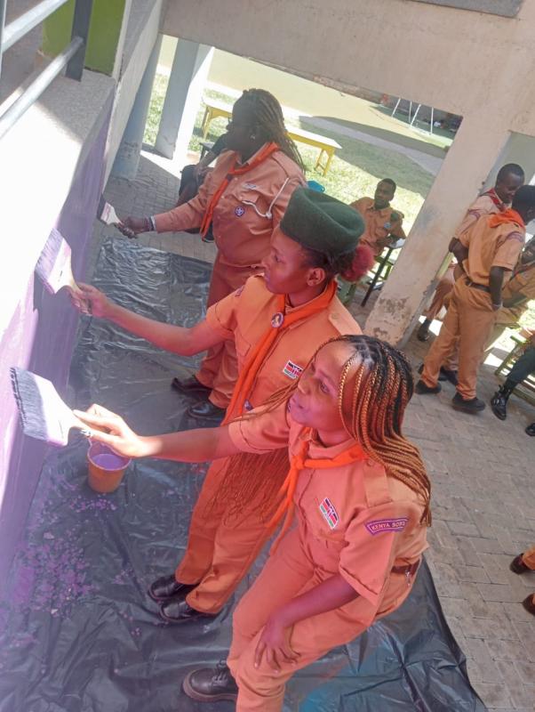 We later held an activity with the Yari scouts where we painted a section of the school together and showcased our artistic skills by drawing the world badge on the painted wall. After that, we wrote down the scouts' laws and promises for both the Chipukizi and Sungura sections. We involved Yari scouts and it was a great experience to share with them our scouting moments.