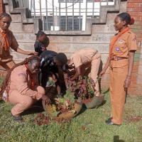 After wall painting, we planted flowers at the school. This was to beautify the school and to encourage the young scouts to take care of their environment and realize how important our environment is to us.