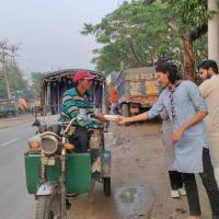 পথচারী ও চালকদের মাঝে ইফতার বিতরন