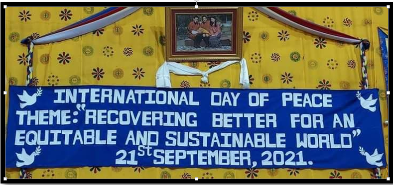 On 21st September, 2021, Jomotsangkha MSS, celebrated the “International Day of Peace” on the theme, “Recovering better for an equitable and sustainable world”. The program started with the reception of the chief guest by the scouts. We have recited National Anthem, flag song (Nekartenzhu) followed by His Majesty’s Zhabten. After that a short speech was delivered by the troop leader, highlighting the significance of the day. To commemorate the day, a short video and a song related to the theme was displayed. The program, not only created awareness to the scouts members and the troop leaders but also the non-scouts.