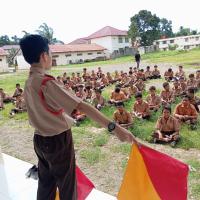 Pertama, kami menyusun jadwal mingguan dengan materi kepramukaan seperti sandi morse, semapore, dan Peraturan Baris-Berbaris (PBB). Setiap materi diajarkan secara praktis. Misalnya, dalam belajar sandi morse, siswa langsung berkomunikasi menggunakan kode morse. Demikian juga dalam semapore, mereka mempelajari penggunaan bendera sebagai alat komunikasi. Pembelajaran ini dilakukan dengan bimbingan pembina yang berpengalaman.