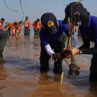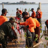 "Untuk kawan-kawan pramuka semua, di bulan bakti pramuka ini saatnya kita mengabdi. Ada banyak yang bisa kita lakukan. Hari ini kita tanam Mangrove, tanam cemara laut," ujar Kak Ganjar