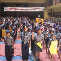In Our school ,Shree Maheshwari Vidyalaya Premises we organise a campaign on the Gandhi ji birthday to Stop using Single use Plastic. We first meet at 7 Am in our school. We was start with all faith Prayer and after that we conduct a rally in our local area so peoples strictly avoid single use plastic. We share many posters and told to peoples to stop using it.