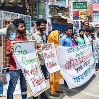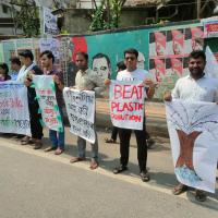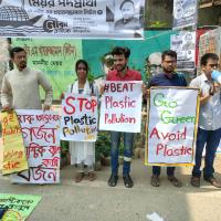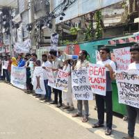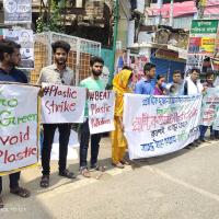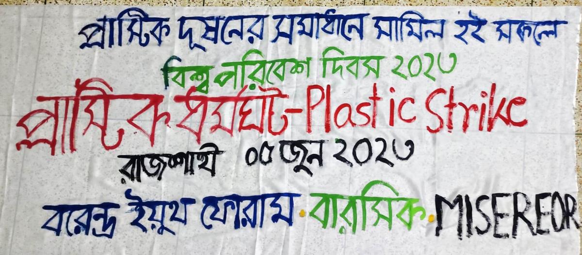 Plastic Strike was held on June 5th World Environment Day 2023 at Saheb Bazar Zero Point in Rajshahi with the theme "Let's all join in solving plastic pollution" where the discussion on reducing the use of plastic, recycling and recycling, was part of the plastic banner instead. The use of cloth banners was introduced.