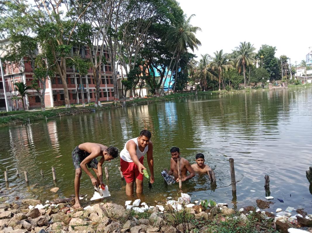 # প্লাস্টিক আমাদের সবার জন্য ক্ষতিকর, আমরা বরিশাল পলিটেকনিক ইনস্টিটিউট রোভার স্কাউট গ্রুপ এর পুকুরে প্লাস্টিক পরিষ্কার করি