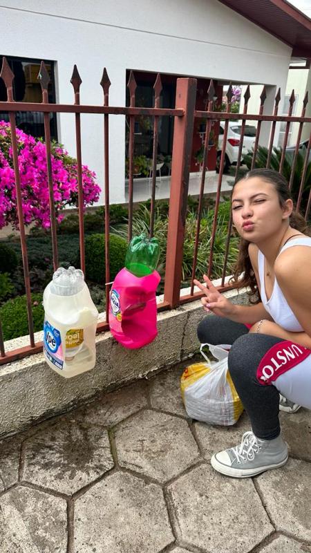 Projetos desenvolvidos pela escoteira Nicolly Sophie Da Rosa Domingues do Grupo Escoteiro Pé Vermelho-01/Pr. Buscando as insígnias de Ação Comunitária e Reduzir, Reciclar, Reutilizar. Os projetos foram iniciados nos dias 16/05/23 e 29/06/2023 e as finalizações foram feitas nas datas 15/08/2023 e 17/09/2023. Os objetivos dos meus projetos eram arrecadar tampinhas e usar o dinheiro arrecadado para sustentar 5 comedouros e 5 bebedouros. Escolhi o tema pois na minha tropa foram iniciados vários projetos mais nenhum foi com intuito de ajudar animais e como temos nas leis escoteiras a 6º lei o escoteiro e bom para animais e plantas, eu amo os animais e escolhi inicia-lo. Além de ser um projeto e uma boa ação que ajudou os animaizinhos a não passar fome, em nossa cidade é grande a quantidade de animais de rua, conheci muitas pessoas que também tem muito amor com os bichinhos que estão nas ruas, a maioria das famílias que deixaram colocar os comedouros em suas casas também se comprometeram em dar continuidade ao projeto e continuar a abastecer os comedouros.
