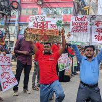 রাজশাহীর খরার তহবিলের দাবিতে মানববন্ধন