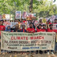 জলবায়ু নায্যতা ও বাংলাদেশের রাজশাহী খরার জন্য তহবিলের দাবিতে ক্লাইমেট মার্চ, ভয়েস রেইজ ও মানববন্ধন কর্মসূচি অনুষ্ঠিত হয়েছে। ২১ নভেম্বর ২০২৩ রাজশাহীর বড় কুঠি এলাকায় বরেন্দ্র ইয়ুথ ফোরাম ও কিছু সংখ্যক রোভার সদস্য মিলে মানববন্ধন বাস্তবায়ন করেছে। তাদের দাবি কপ-২৮ সম্মেলনে যেন বাংলাদেশের রাজশাহীর খরার জন্য তহবিল ব্যবস্থা করা হয় এবং জলবায়ুর নায্যতায়।